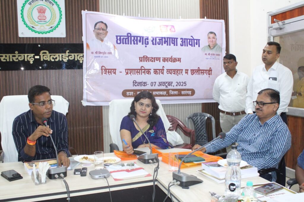 सारंगढ़ बिलाईगढ़, 8 अक्टूबर 2025/ रजत जयंती पर्व म छत्तीसगढ़ राजभाषा आयोग ह सारंगढ़ कलेक्ट्रेट में बैठक कार्यक्रम करिस, जेमा कलेक्टर डॉ संजय कन्नौजे अउ जिला के अधिकारी मन उपस्थित रहीन। कलेक्टर डॉ कन्नौजे, अपर कलेक्टर प्रकाश सर्वे अउ आयोग के अधिकारी मन कार्यक्रम के शुरुआत भारत माता अउ छत्तीसगढ़ महतारी के तस्वीर के आघू दिया जलाके करीन। बैठक में कलेक्टर ह अपन परिचय छत्तीसगढ़ी में दिस।