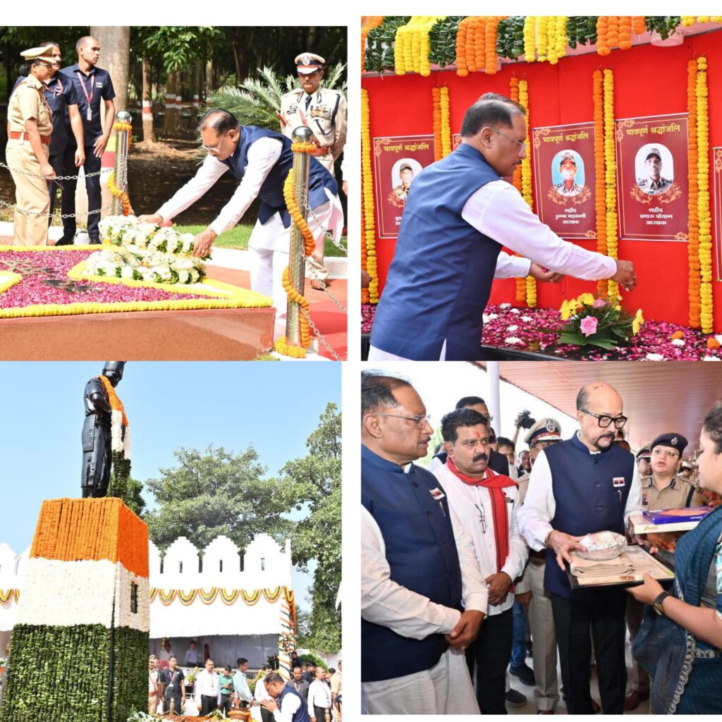 रायपुर, 21 अक्टूबर। मुख्यमंत्री श्री विष्णुदेव साय आज माना रायपुर स्थित चौथी वाहिनी, छत्तीसगढ़ सशस्त्र बल के प्रांगण में आयोजित पुलिस स्मृति दिवस परेड समारोह में शामिल हुए। इस अवसर पर उन्होंने राज्यपाल श्री रमेन डेका जी के साथ प्रदेश की जनता की ओर से देश एवं प्रदेश की सुरक्षा में अपने प्राणों की आहुति देने वाले पुलिस के शहीद वीर जवानों को श्रद्धांजलि अर्पित की। मुख्यमंत्री श्री साय ने शहीद स्मारक पर पुष्पचक्र अर्पित कर शहीदों के बलिदान को नमन किया और कहा कि उनका साहस और समर्पण हमेशा हमें प्रेरित करता रहेगा।